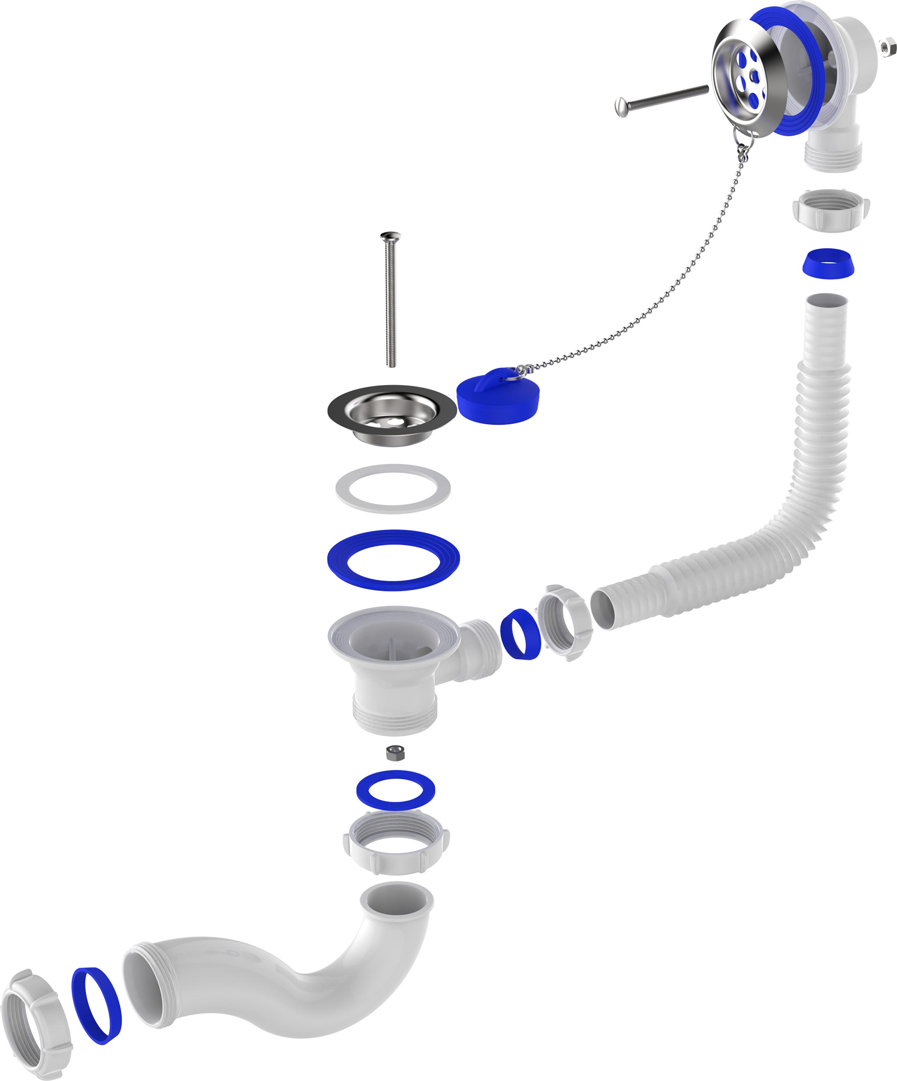 Прямоточный сифон Aquant для ванн. Выпуск с решеткой из нержавеющей стали Ø70 мм предназначен для стандартного сливного отверстия ванн Ø50 мм. Подходит для всех типов ванн, включая чугунные. Решетка крепится винтом 60 мм с шестигранной гайкой М6. Перелив комплектуется трубкой длиной 50 см и металлической решеткой. Прямоточное колено обеспечивает высоту гидрозатвора 50 мм и скорость слива до 25 л/мин. В комплекте прокладка-бабочка из термоэластопласта (ТЭП), инертного к акриловым поверхностям, и пробка на цепочке. Труба для подключения к канализации приобретается отдельно. Полная комплектация включает все необходимые крепежные элементы и инструкцию по установке.